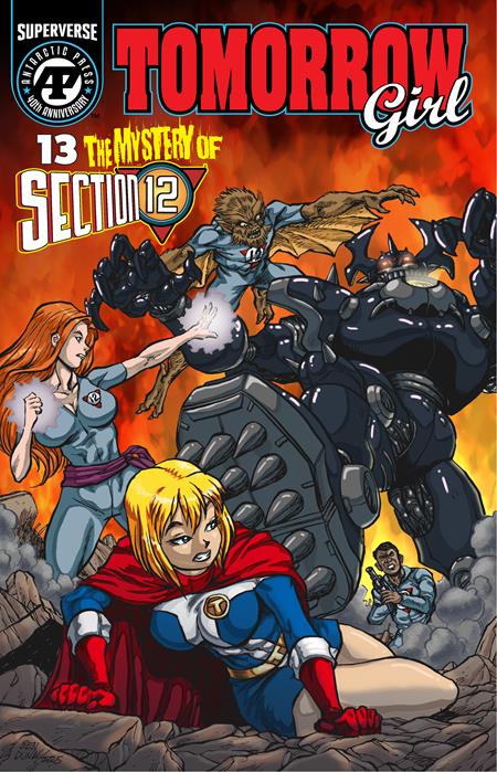 Giant robots are running amok, proving to be too much for even Tomorrow Girl to handle. She is met by a group of strange new heroes called Section 12. But are they allies or enemies? Plus Part 3 of “The Origin of Tractor Lad” by Dan Collins!