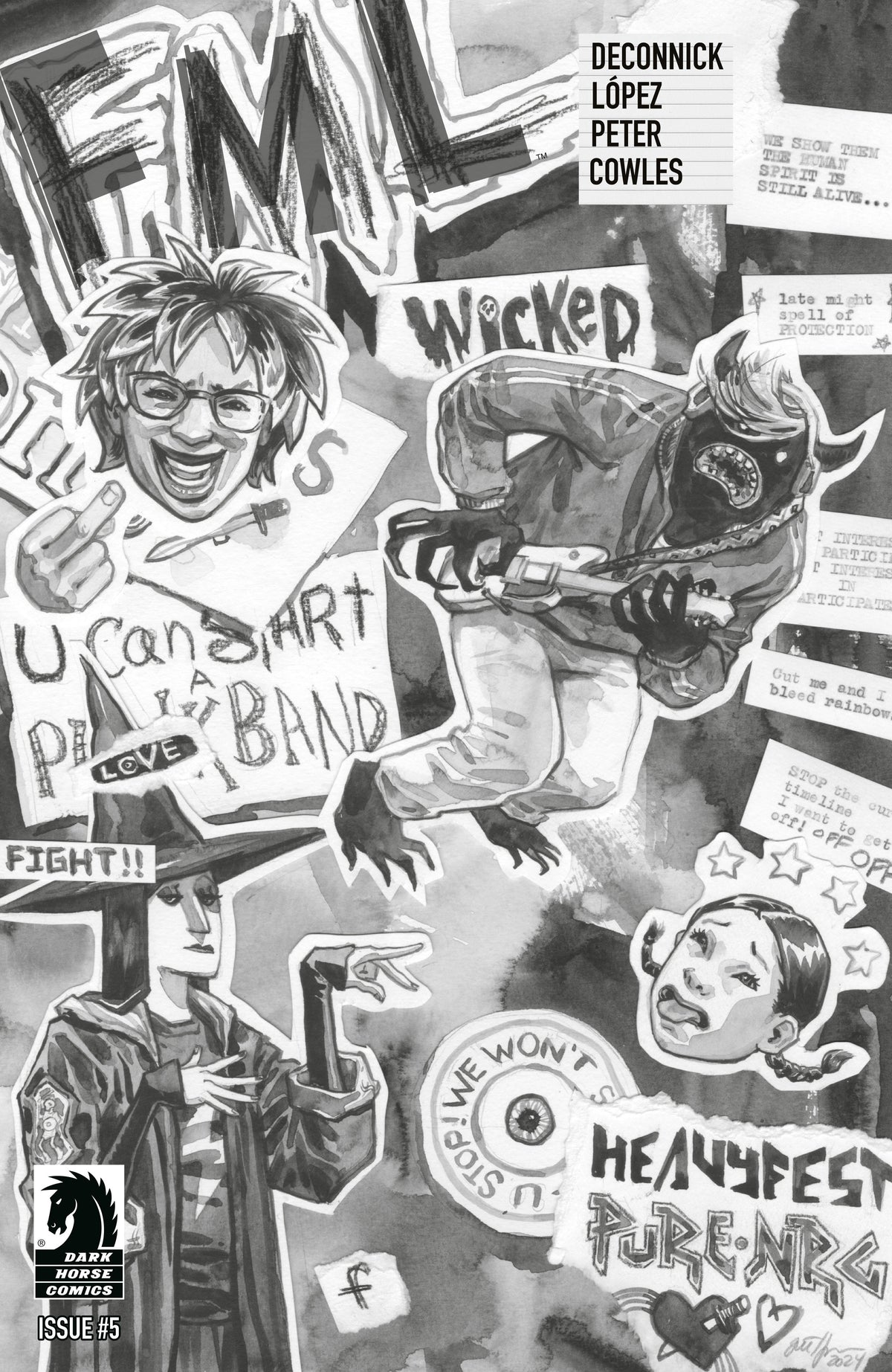 As Riley and his band become schoolyard pariahs, accused of murder, their daily life turns into a bizarre blend of fear and isolation. The school principal, ever so helpfully, suggests remote learning “to avoid disruption”—because nothing says normal like school over Zoom. Determined to clear their names, the gang finally joins forces with the Whine & Crime ladies, diving into the murky depths of the dark web and past misdeeds. Meanwhile, a dog walk with Dad takes a nosedive when Riley discovers another body, this time in a sinkhole. Cue the clandestine purchase of a burner phone—because reporting a body anonymously is just another Tuesday in Portland. Back at the house, a revelation from Mom about her imagined magical friends sends shockwaves through the group, only to be overshadowed by Amy’s bombshell confession about her past with Kat. In the stunning silence that follows, the phone rings: Riley’s been arrested and charged with murder. FML. • Features bonus material exclusive to the single issues only such as essays on music, true crime, interviews, and more! • Eight issue series.
