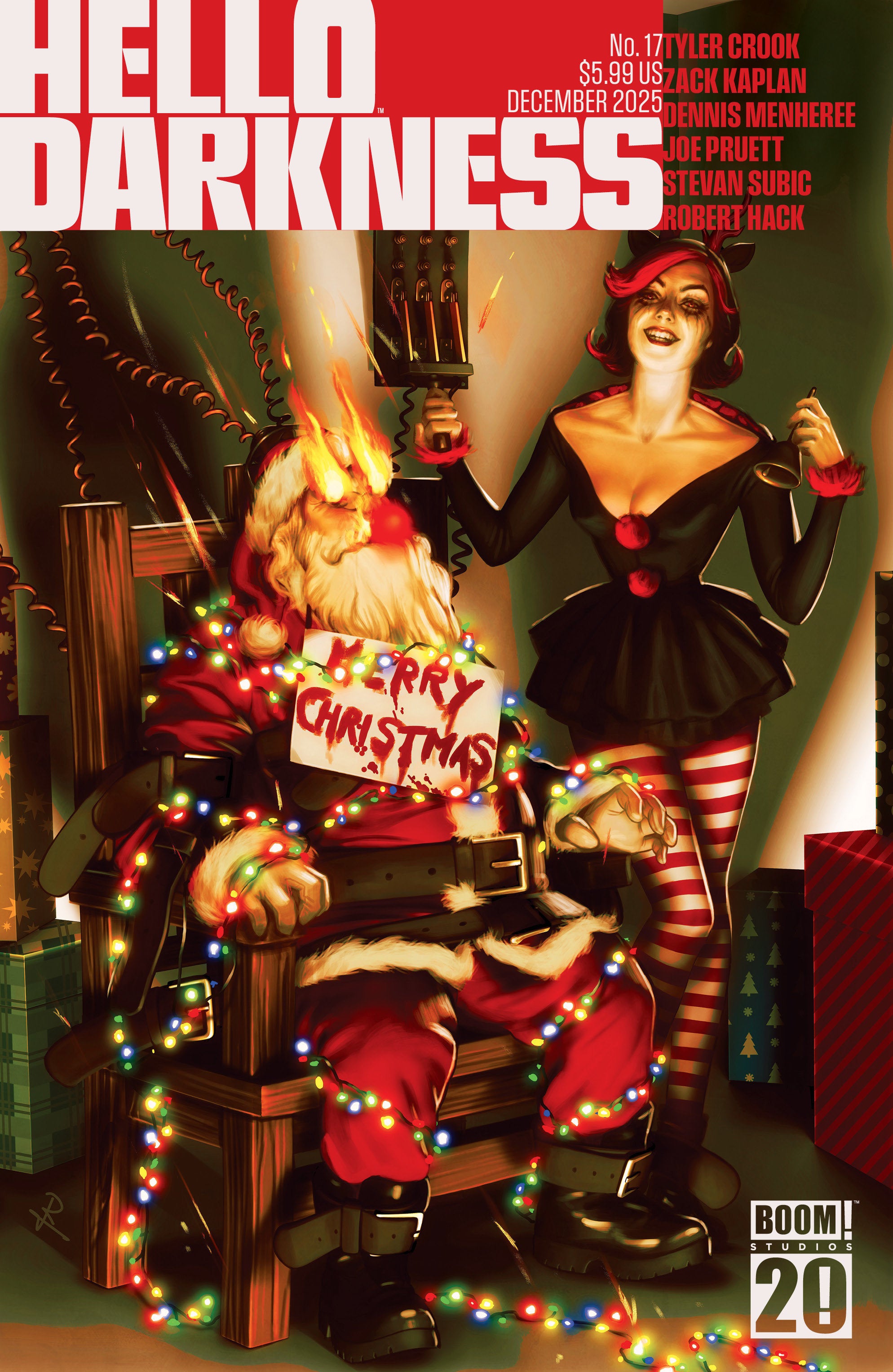 ‘Tis the season…for fearsome frights!Get ready for a gruesome stocking stuffer of Ho-Ho-Horror with these tooth-gnashing tales!Witness a dark hunger that can never be sated in “The Pothole” by award-winning cartoonist Tyler Crooke.Then, take a walk down memory lane with “Recollect” by Zack Kaplan and Dennis Menheree as they unfurl a crime that cannot be forgotten and cannot be forgiven.